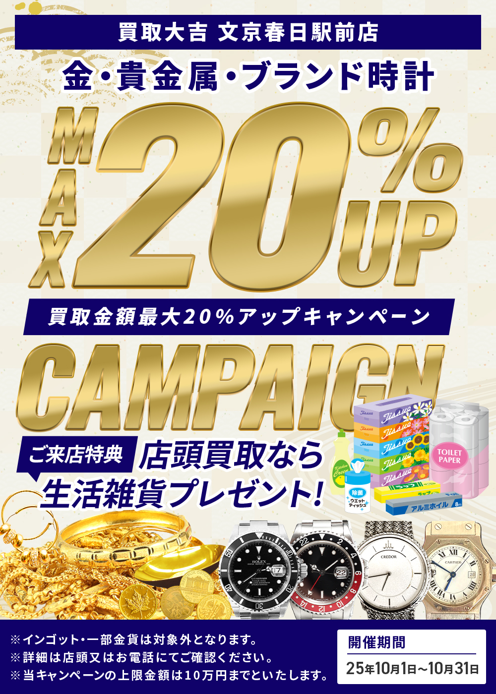 \10月/WEB限定!『買取金額最大20%アップ+生活雑貨プレゼントキャンペーン』を開催中!